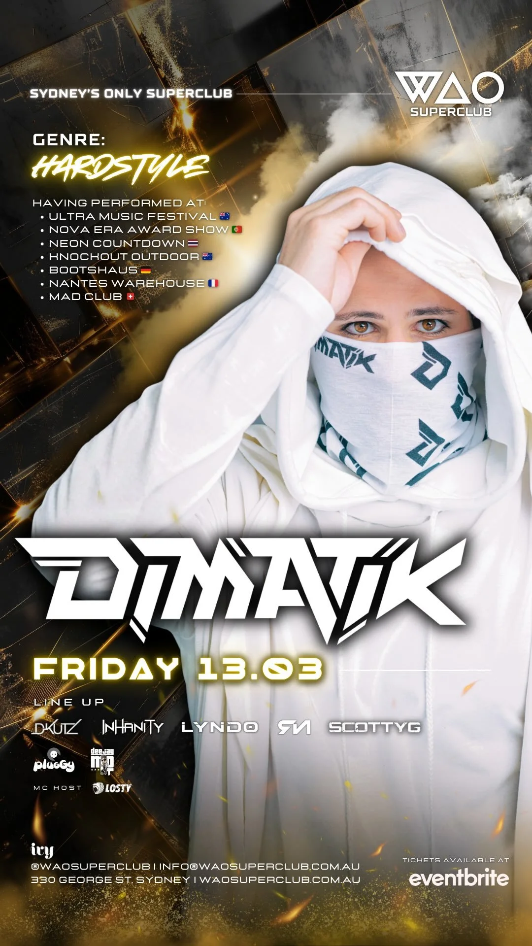 WAO Superclub is Australia’s largest nightclub brand, delivering Sydney’s biggest Friday nights at the iconic Ivy since 2021. Multi-level, high-impact production meets RNB, Tech House, Techno & Hardstyle, with world-class international DJs, luxury VIP booths, Vegas-style bottle service, and unmatched energy at monumental scale.